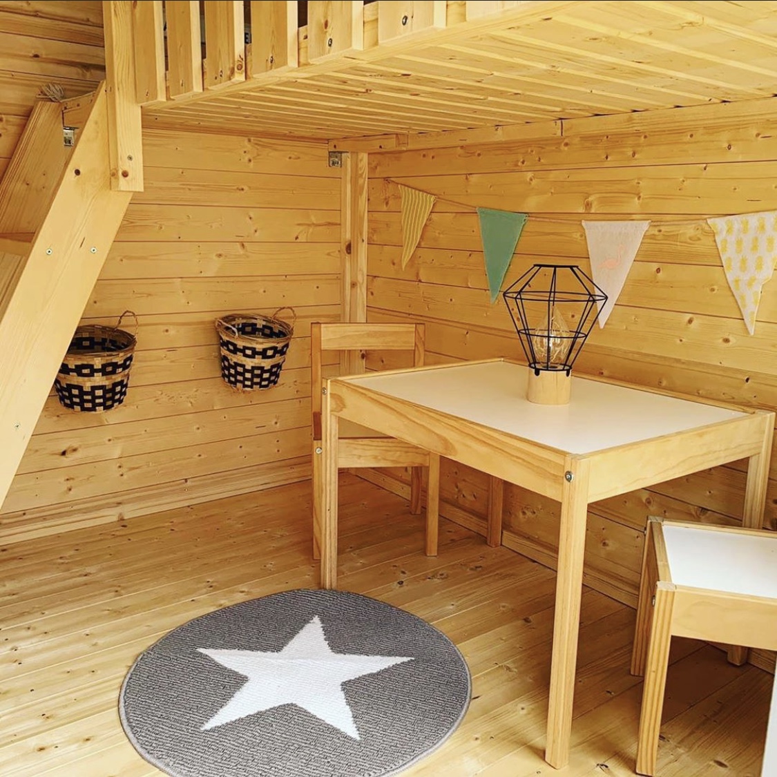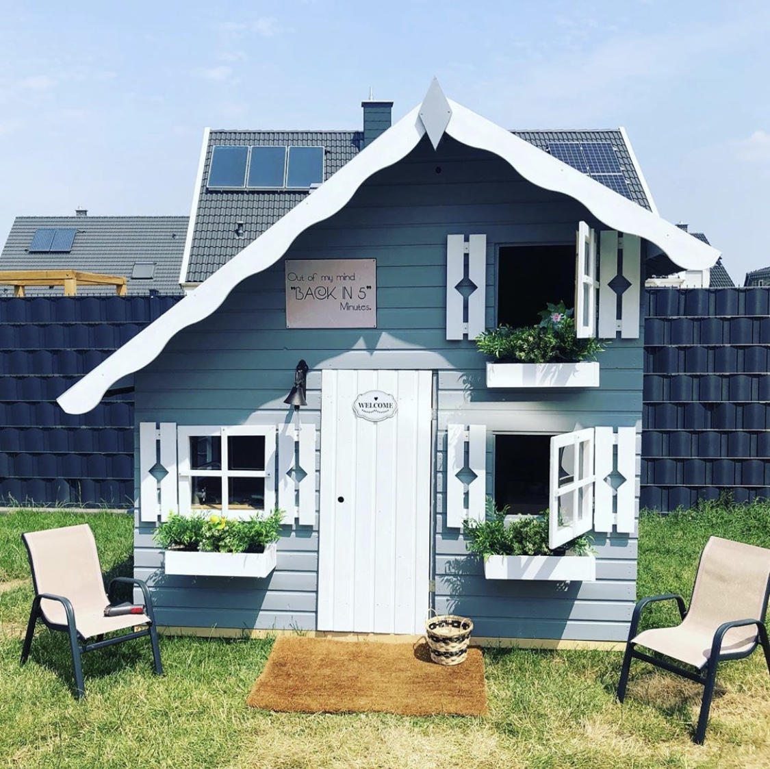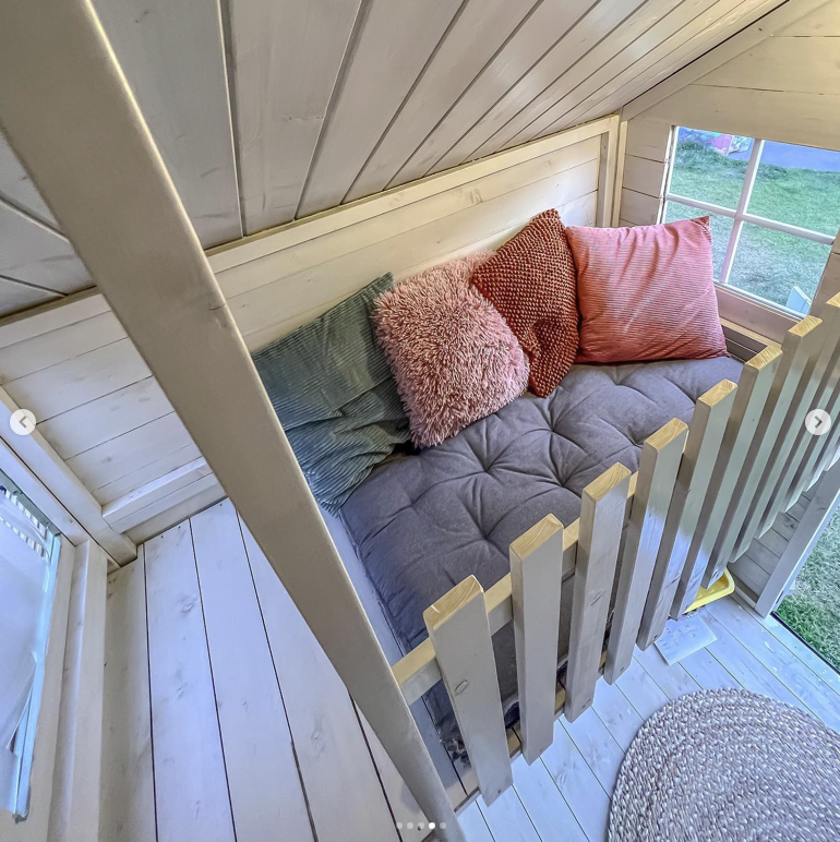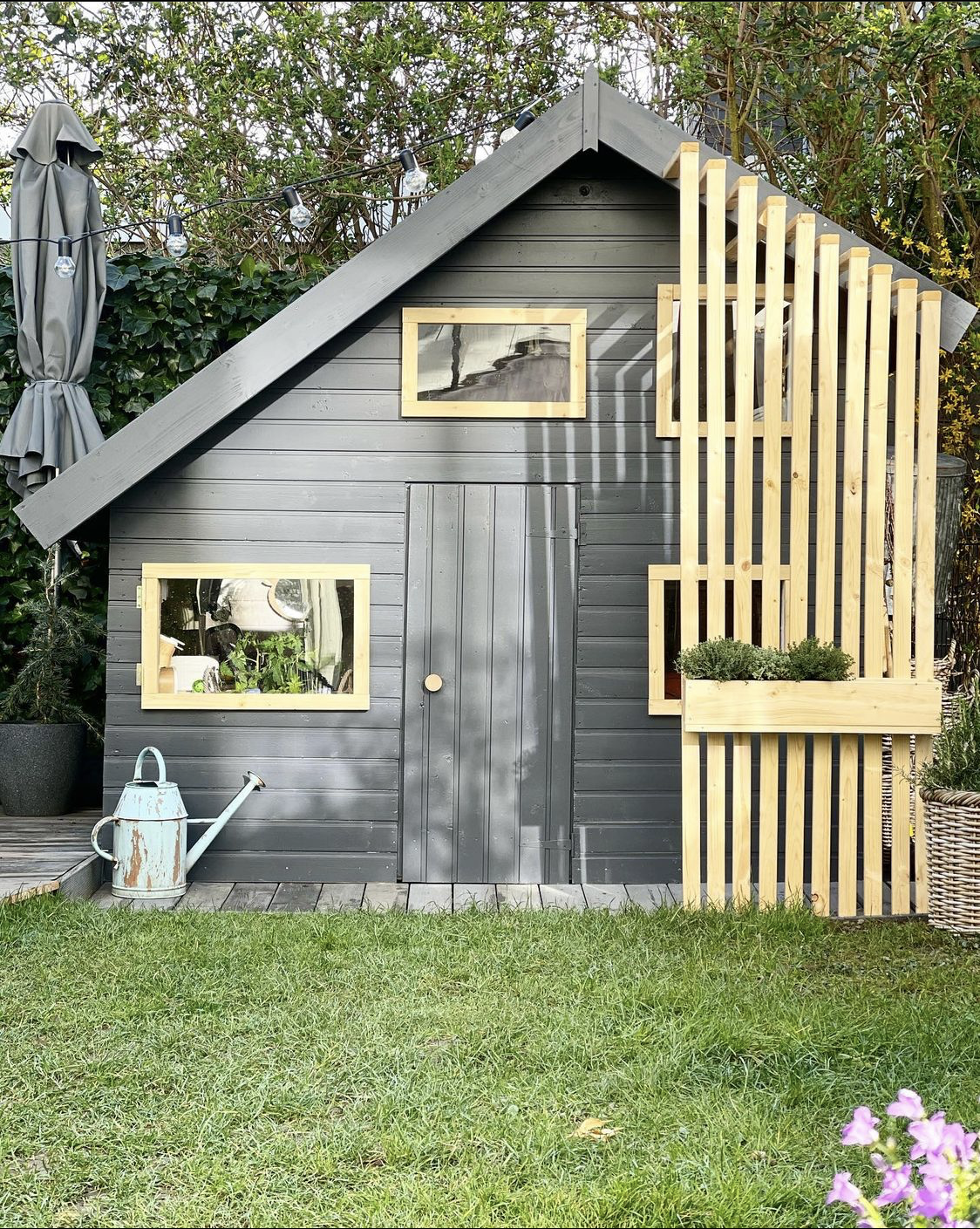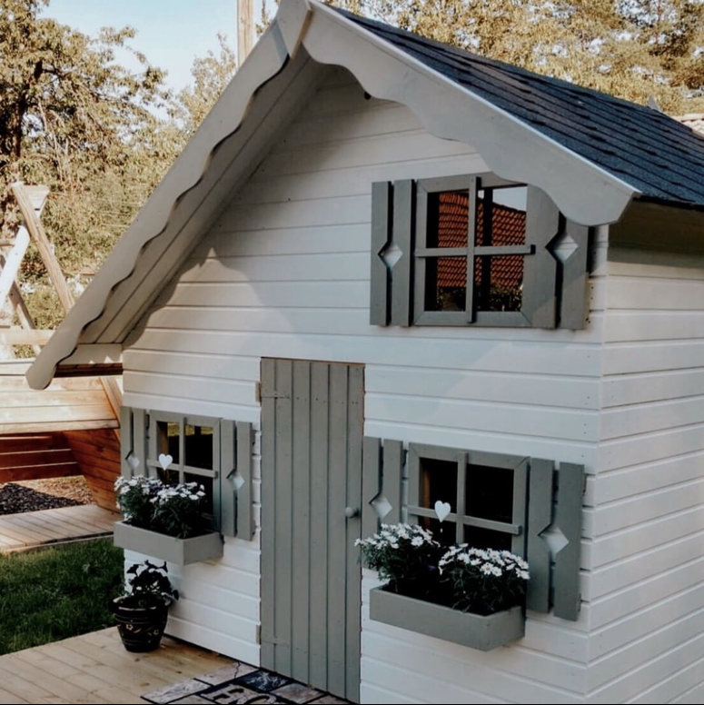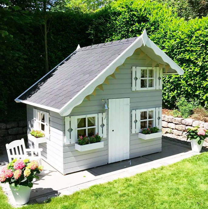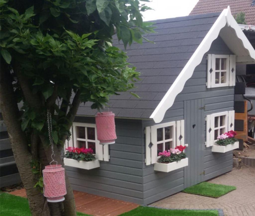 Ook zitten er 3 plantenbakjes bij wat het speelhuisje leuk aankleed, en heeft het speelhuisje een trap en verdieping.